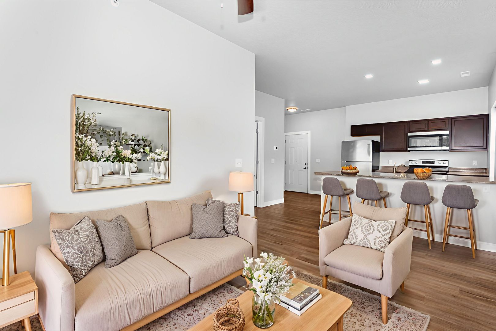Step into elevated living at The Groves on Devils Glen—where comfort meets convenience in the heart of Bettendorf’s sought-after Pleasant Valley School District. Each residence is thoughtfully designed with luxury plank oak-style flooring throughout the living areas, plush carpeting in the bedrooms, and high-end finishes that elevate everyday living. Enjoy modern stainless-steel appliances, brushed nickel fixtures, and the ease of an in-unit, full-size washer and dryer.